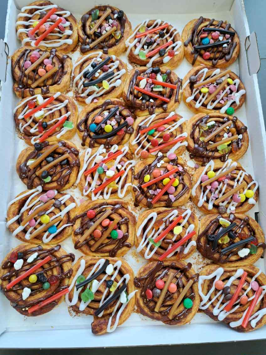 Pyntet med slik og glasur. Nok til 18-20 personer